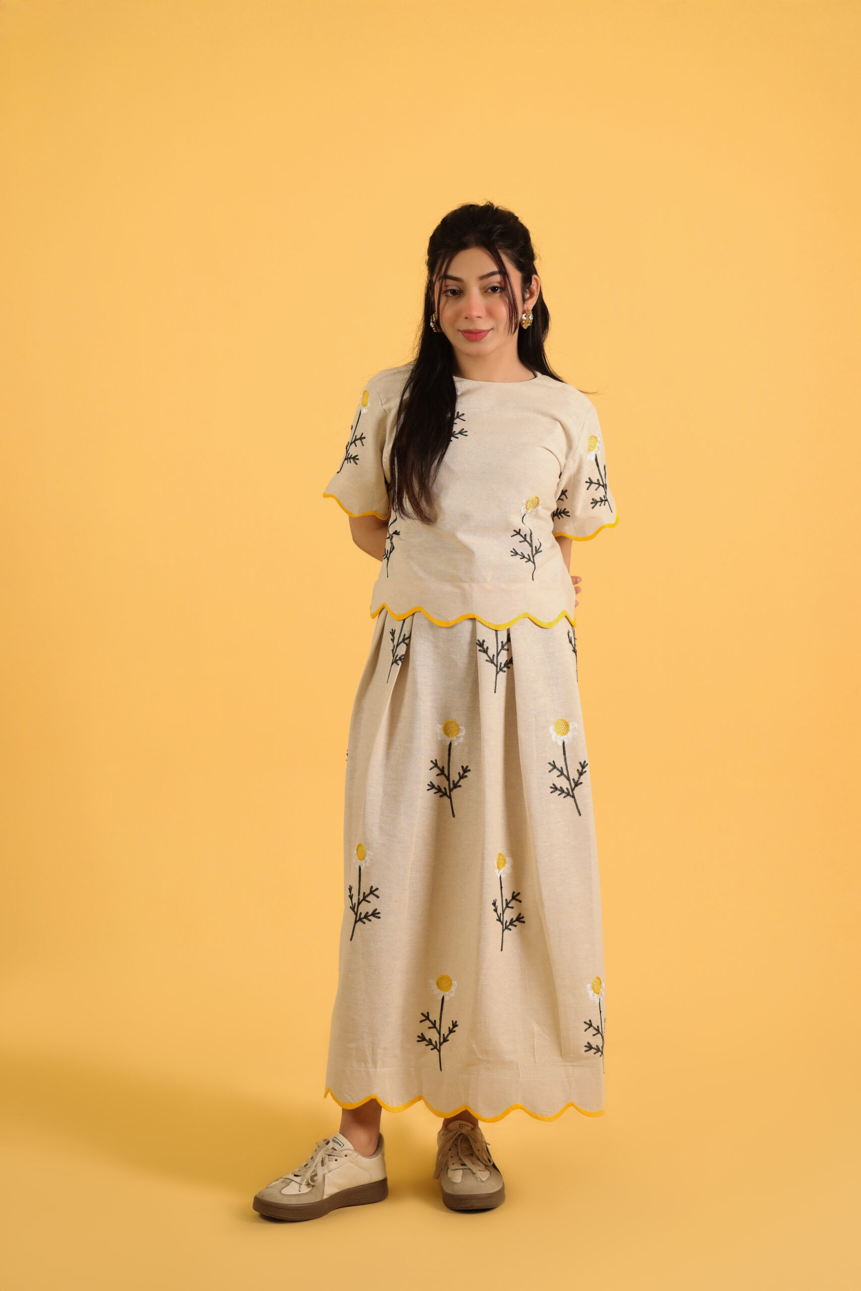 Step into a narrative of elegance with the effortlessly artistic Chamomile Scallop Skirt. A signature standout from the Letters of Bloom collection, it invites you to wear your story with every step.