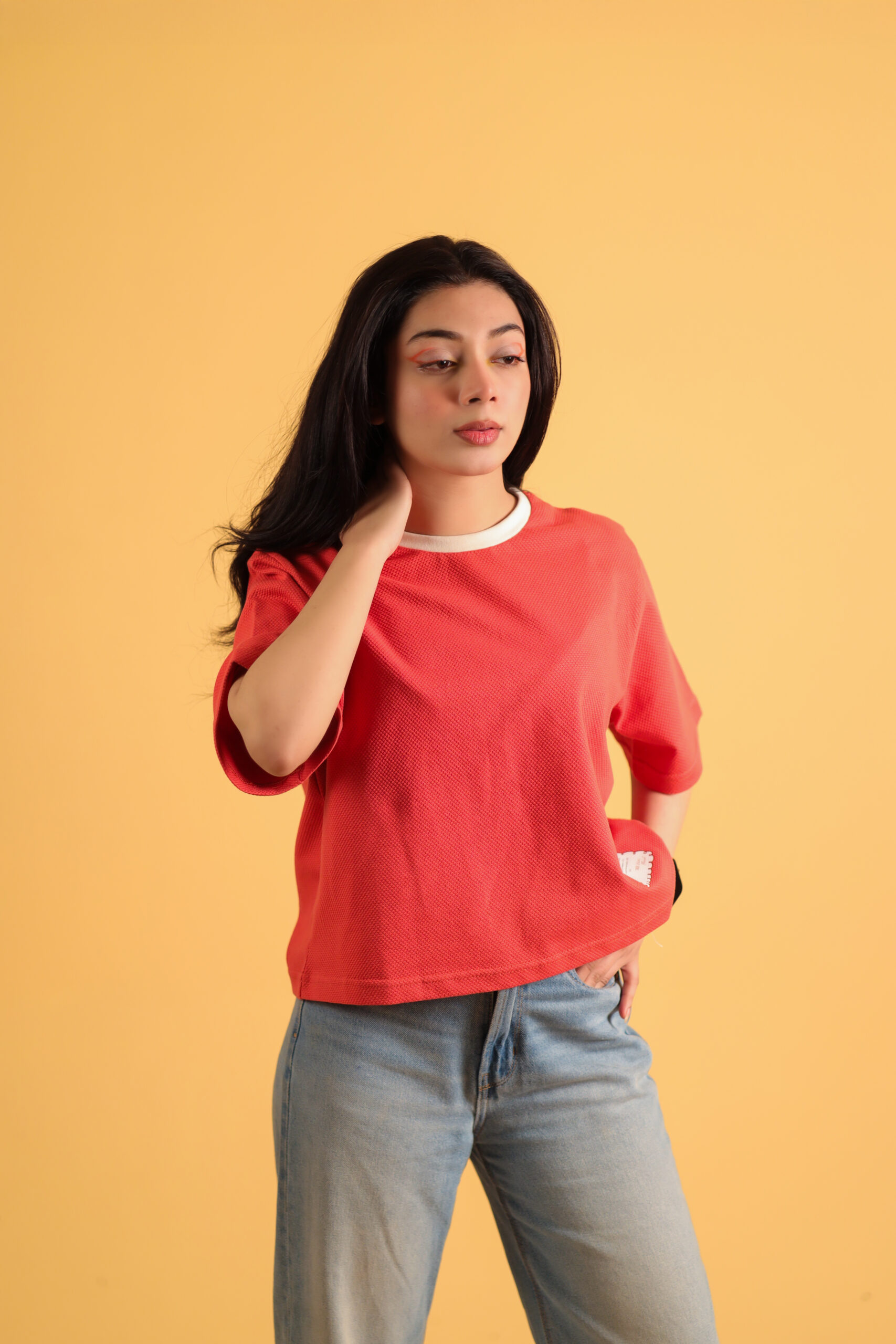 Make a bold declaration with The Manifesto Tee. Crafted from a rich, textured cotton knit, this vibrant red piece serves as a canvas for self-expression. The relaxed, boxy silhouette features wide, elbow-grazing sleeves for effortless comfort and modern structure. Anchored by a unique, raw-edged patch on the hem that details the philosophy of the Letters of Bloom collection, it’s more than just a tee—it’s a wearable chapter of our story, inviting you to live yours out loud.